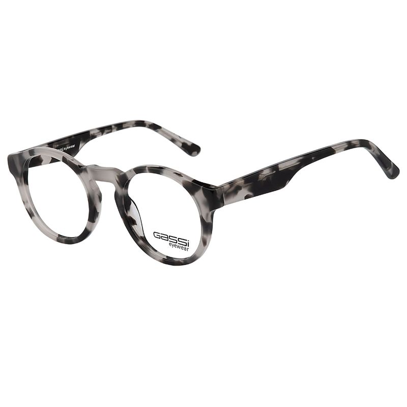 Óculos de Grau Gassi Alfredo Tartaruga Cinza com formato redondo médio e armação em acetato com estampa tartaruga em tons de cinza, para quem prefere um modelo marcante.