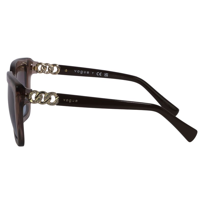 O Vogue 0VO5575SB é um óculos de sol feminino que combina elegância e ousadia, ideal para quem busca um acessório marcante e sofisticado. Suas lentes com efeito degradê marrom, mais escuras na parte superior e gradualmente mais claras na inferior, oferecem proteção contra o brilho intenso e facilitam a visão em diferentes ambientes.