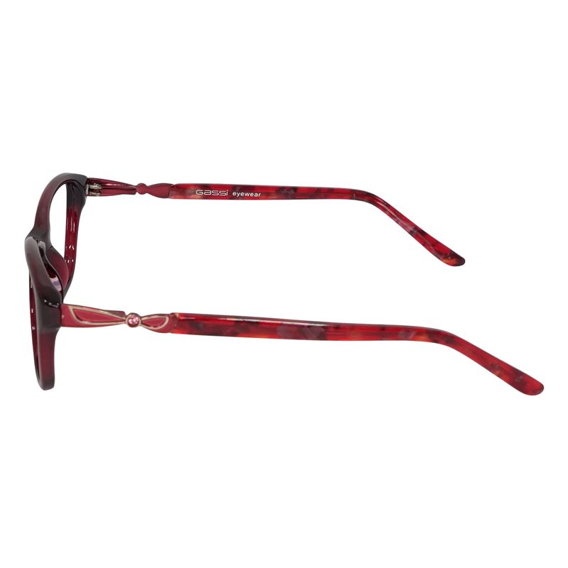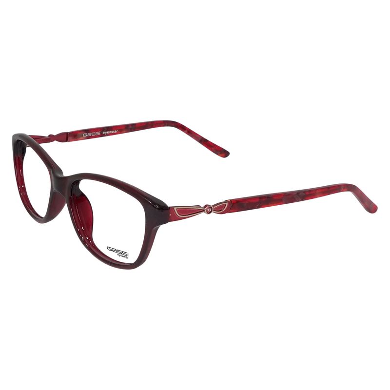 Óculos de Grau Gassi Infantil Belle Vinho com formato gatinho suave, detalhe de laço nas laterais e armação resistente, pensado para conforto no uso diário.