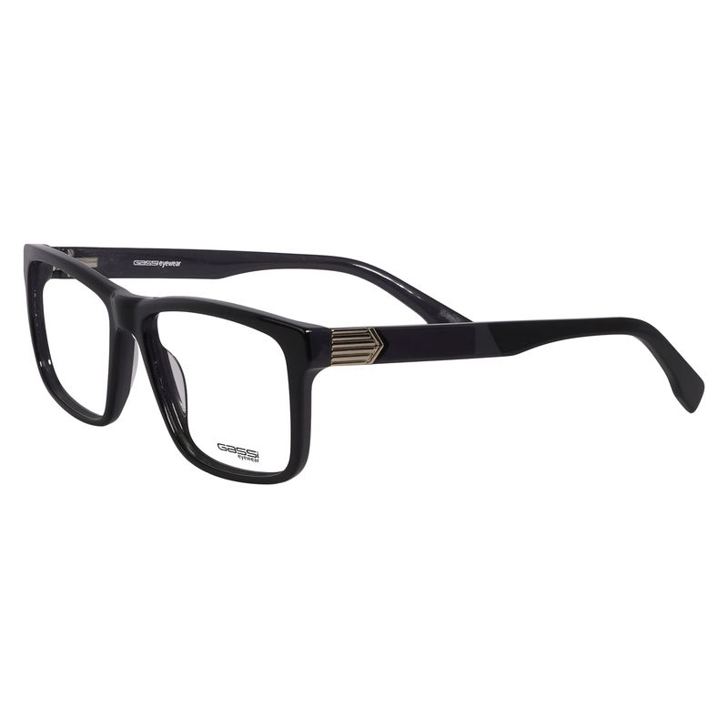 Óculos de Grau Gassi Dom Preto com armação quadrada em acetato preto e detalhes discretos nas hastes, para quem prefere modelos clássicos.