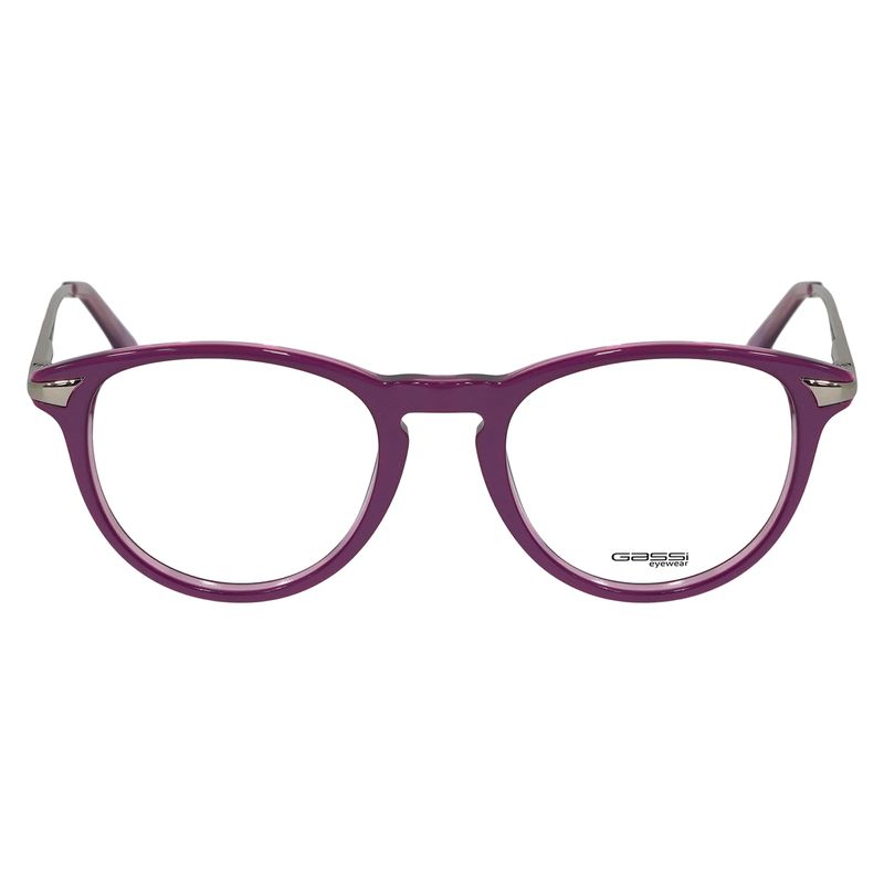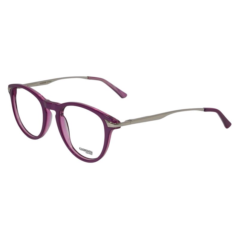 Óculos de Grau Gassi Infantil Nina Roxo em acetato resistente, com hastes metálicas leves e formato anatômico, pensado para conforto e firmeza no uso diário.