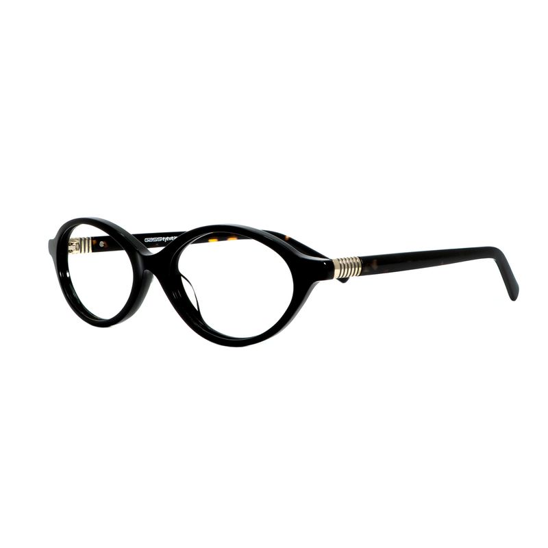 O modelo Scarlet em acetato combina elegância atemporal com um toque de originalidade. A armação frontal preta apresenta um formato oval sutilmente alongado, que remete ao estilo vintage com uma abordagem moderna e discreta. As hastes, em padrão marmorizado clássico, trazem um contraste sofisticado ao design, além de detalhes metálicos dourados espiralados próximos às dobradiças, que adicionam requinte ao visual. Leve e confortável, é uma escolha versátil para quem busca estilo com personalidade no dia a dia.
