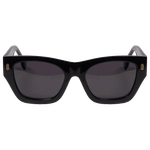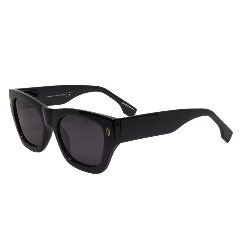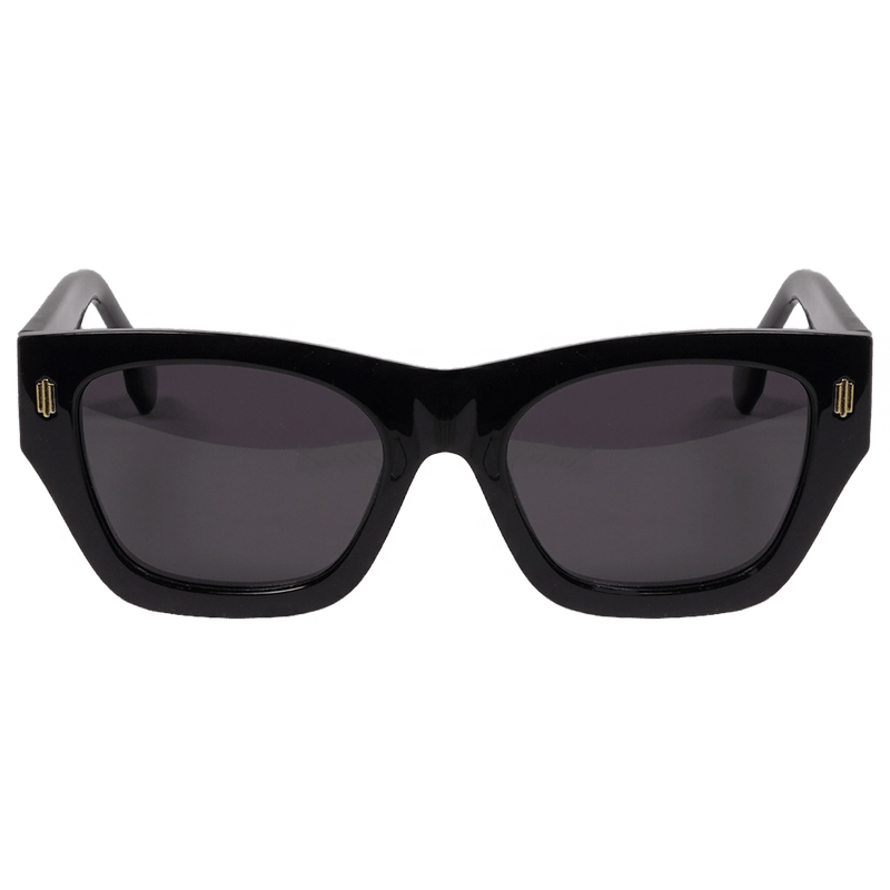 O modelo Louise personifica o poder e a sofisticação através de um design "oversized" de presença inquestionável. Com uma armação robusta em preto polido e lentes escuras de alta proteção, o destaque fica para os detalhes dourados minimalistas na parte frontal e as hastes largas que garantem um ajuste seguro e luxuoso. É o acessório indispensável para quem busca um visual clássico, imponente e absolutamente atemporal.