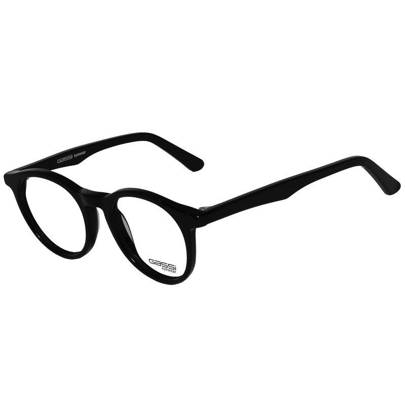 Óculos de Grau Gassi Infantil Vicente Preto com formato redondo e armação em acetato preto, resistente e confortável para o dia a dia das crianças.